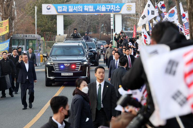 이날 윤 대통령은 법원의 구속 취소 결정과 검찰의 즉시 항고 포기 결정에 따라 체포 52일 만에 대통령 관저로 돌아왔다. 윤 대통령은 관저 들머리에 진입한 뒤, 차량에서 내려 몰려든 지지자들을 향해 손을 흔들었다. 한 지지자는 “왜 두 발로 걸어 나오셨겠나. 본인이 건재하고 우리 국민과 반국가세력을 척결하겠다는 의지 보여주신 것 아니겠냐”고 말했다.