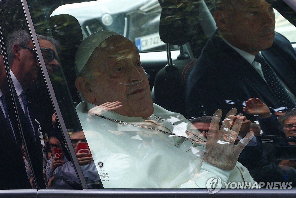 교황, 5주 만에 퇴원…신도 앞에서 "모두에게 감사"