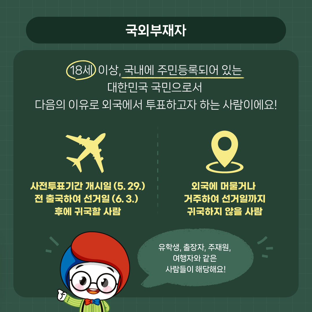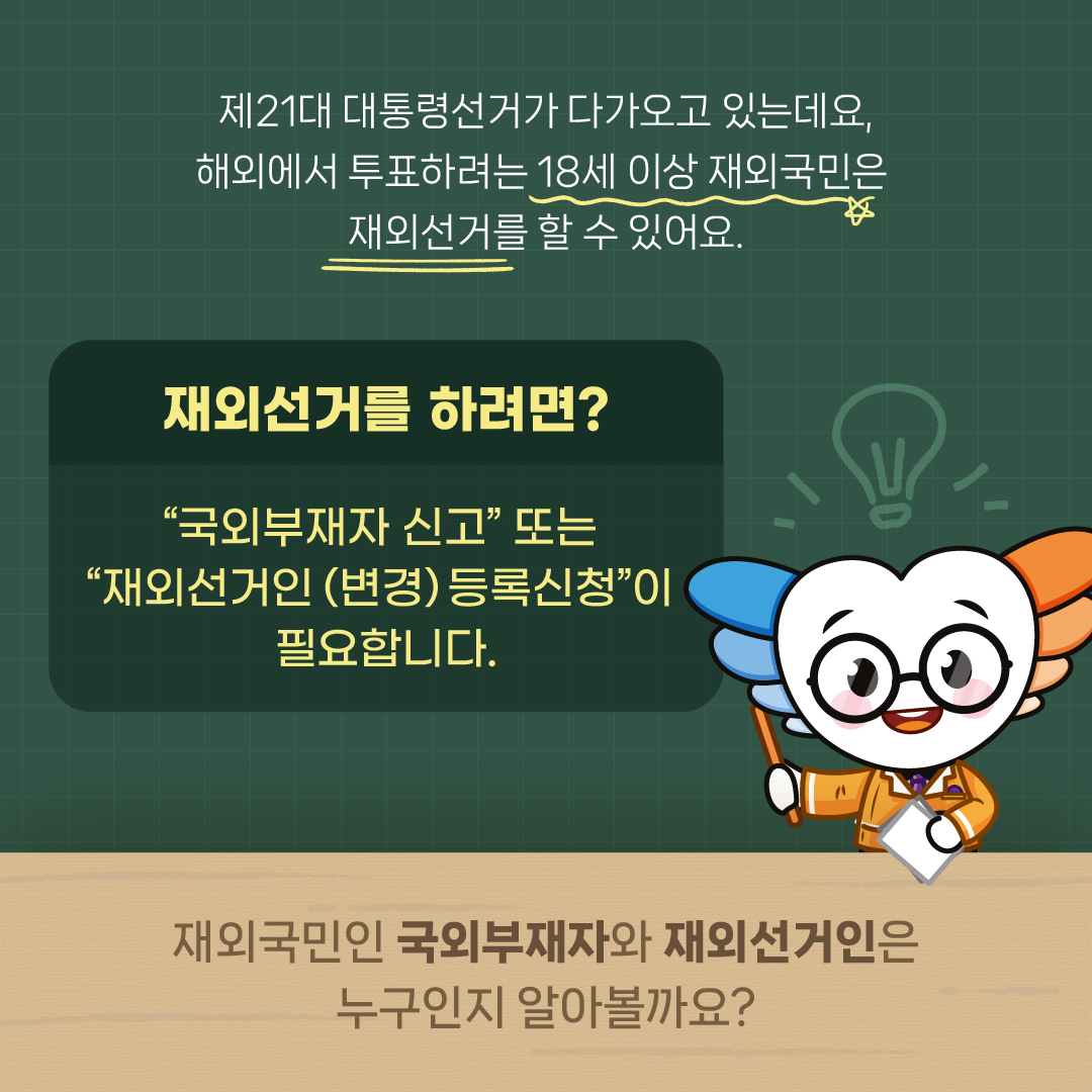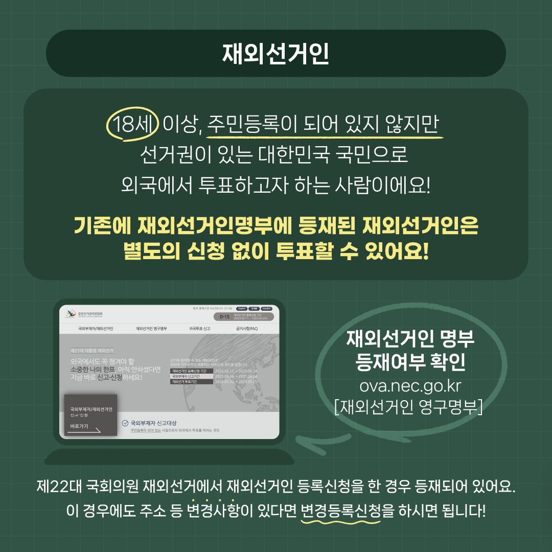국외부재자(체류자) 신고- 재외선거인(영주권자) 신청해야