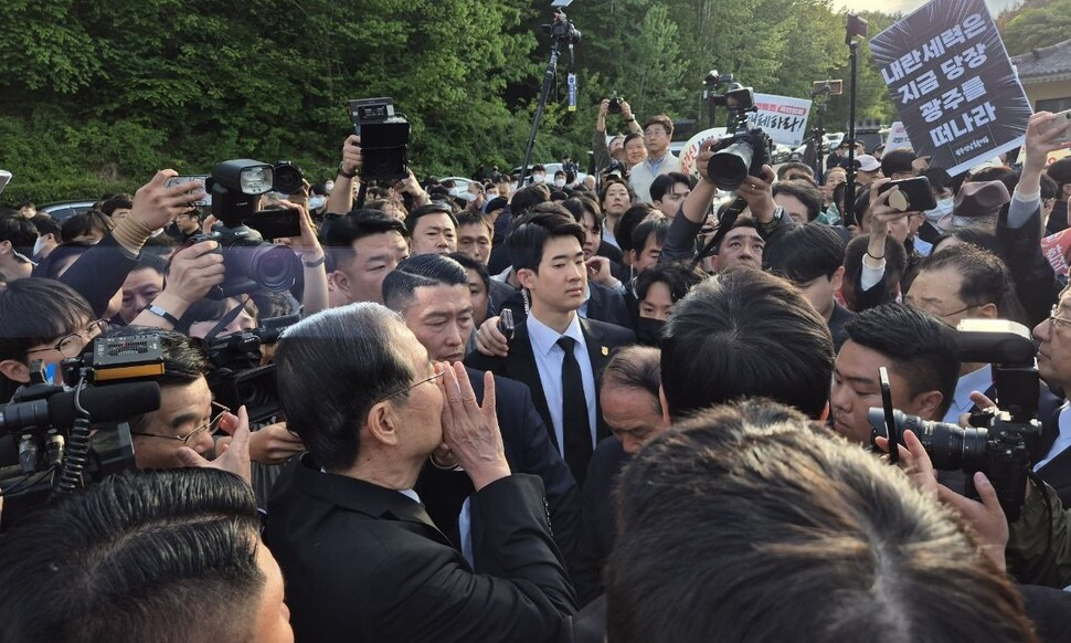 한덕수 전 국무총리가 2일 대선 출마를 선언한 뒤 광주를 찾아 국립5·18민주묘지를 참배하려고 했으나 시민들의 반대로 무산됐다.