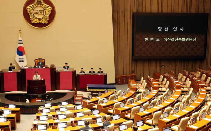 국회가 예산결산특별위원장, 법제사법위원장 등 공석이었던 5개 상임위원장 가운데 4명을 더불어민주당 주도로 선출했다. 민주당은 추가경정예산안(추경) 처리를 비롯한 ‘입법 드라이브’에 본격적으로 나설 채비를 마쳤다. 국민의힘은 상임위원장 일괄 선출에 반발하며 표결에 불참했다.