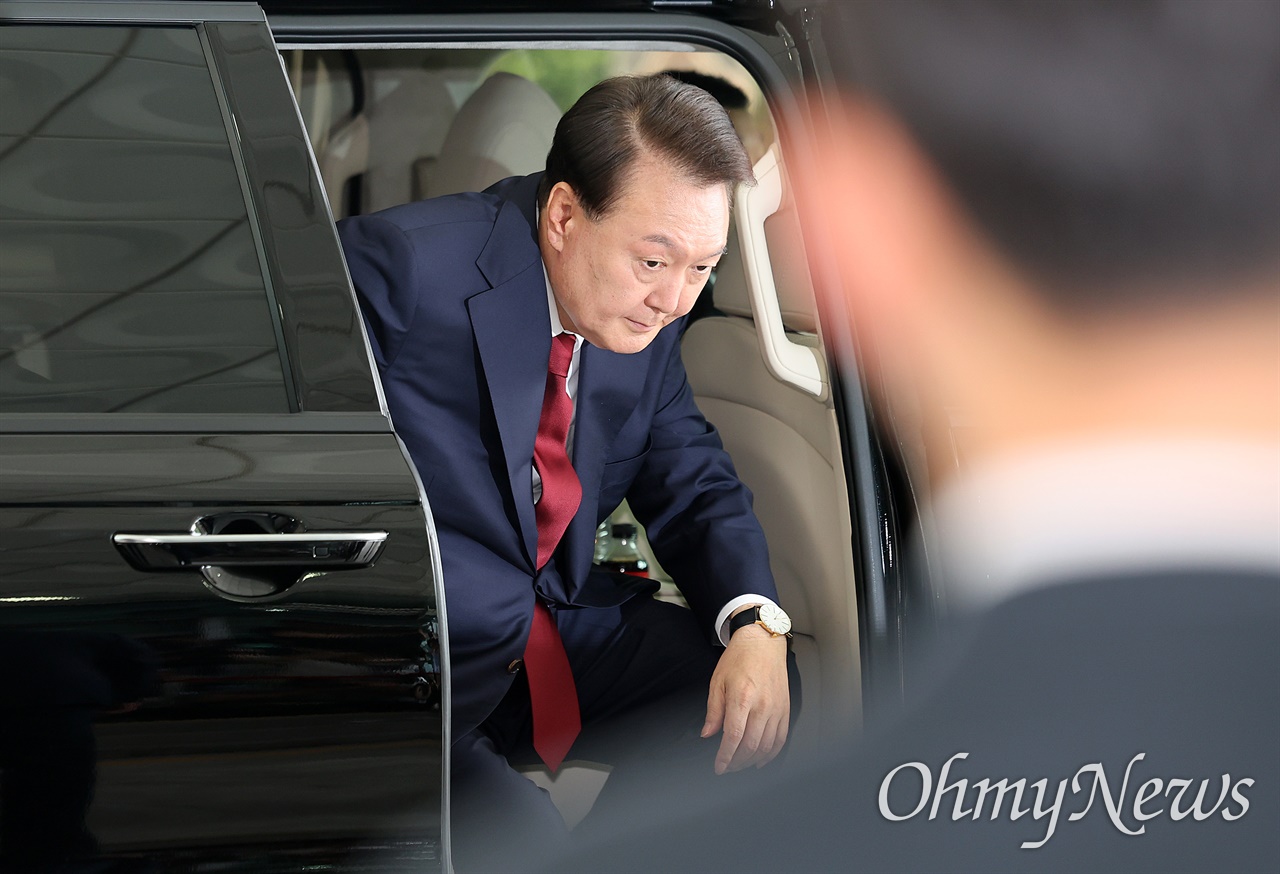 ▲내란과 외환 등 각종 의혹의 정점에 있는 윤석열 전 대통령에 대한 첫 특검 대면조사가 28일 오전 서울 고등검찰청에 마련된 내란특검에서 열렸다. 윤 전 대통령이 특검에 출석하기위해 차량에서 하차하고 있다. ⓒ 공동취재사진