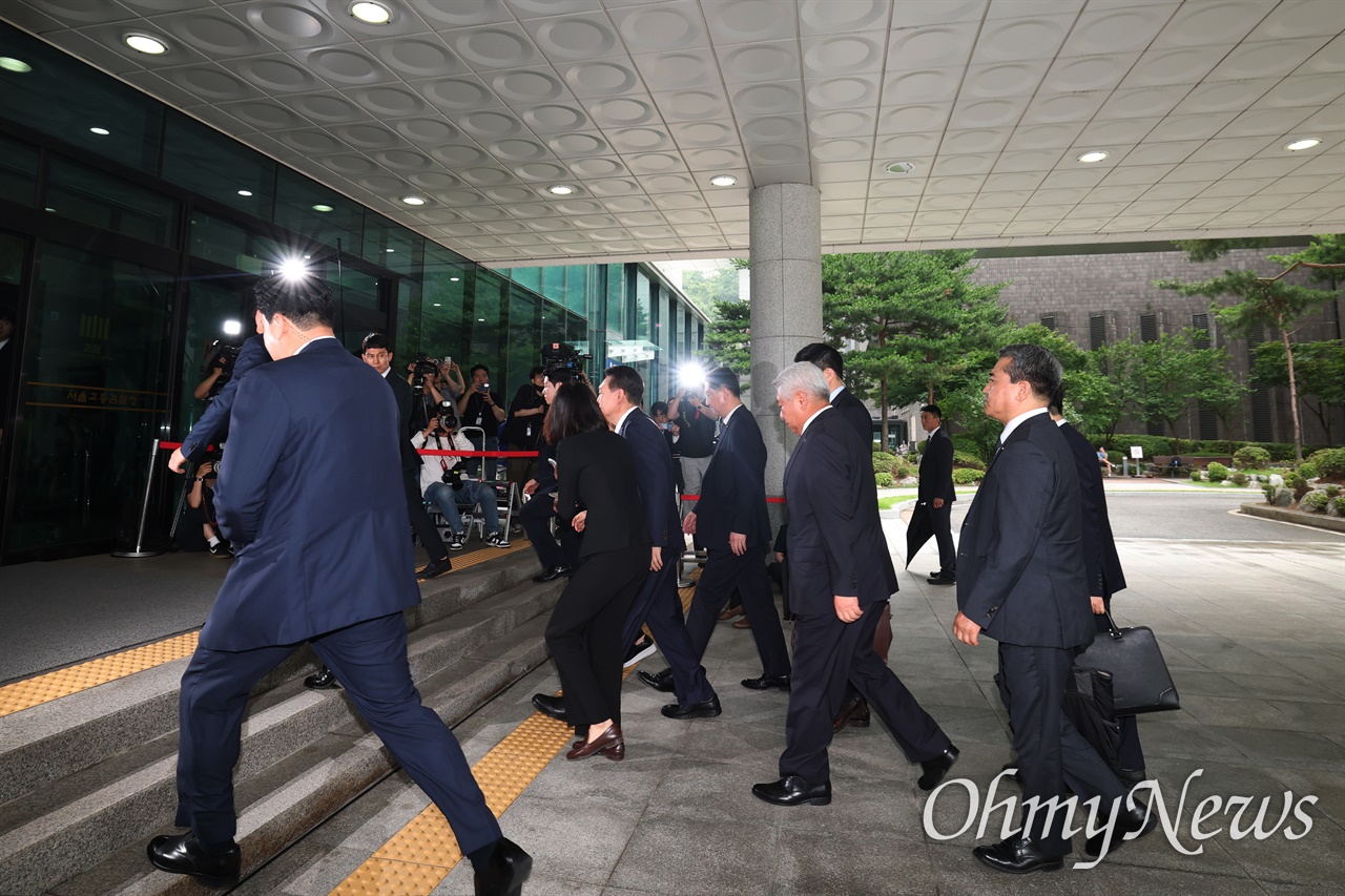 내란 특검에 따르면, 이날 오전 9시 55분 윤씨가 서울고등검찰청 현관으로 들어오자, 검찰수사서기관인 장영표 내란 특검 수사지원단장이 윤씨를 맞았다.