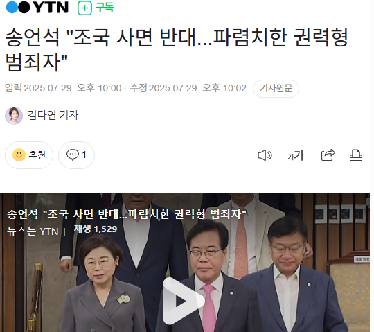 당권 주자들도 가세했다. 김문수 후보는 입장문을 내고 "조국 사면은 이재명 정권 몰락의 서막이 될 것"이라며 "조국이 나라를 구했나. 사람을 살렸나"라고 주장했다. 장동혁 후보는 "입시 비리자 조국을 사면하는 것은 수능을 앞둔 학생과 학부모를 분통 터트리게 하는 짓"이라며 "윤미향은 위안부 할머니들은 물론 민족의 영혼을 짓밟은 악질 범죄자"라고 극언을 서슴지 않았다. < 김호경 기자 >