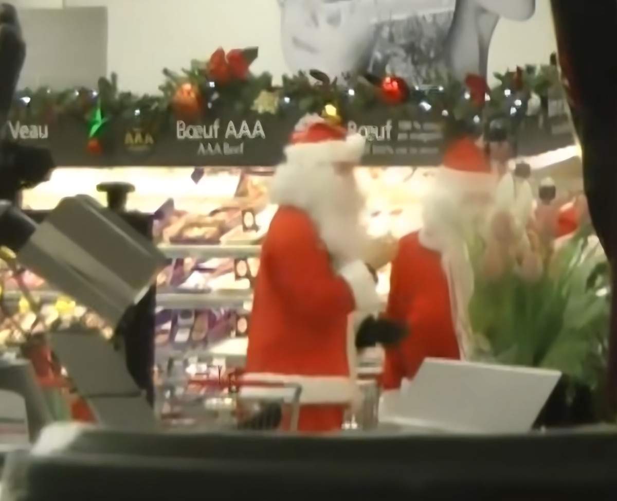빨간 옷을 입고 새하얀 수염을 단 '산타'들이 늦은 밤 캐나다 몬트리올의 한 대형마트에서 수천달러(수백만원)어치 식료품을 훔쳐 달아났다.