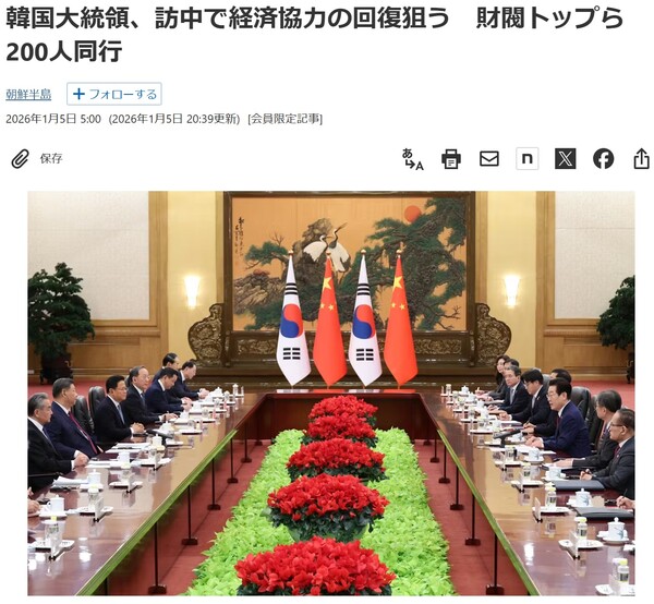 일본언론들은 이번 중국의 이재명 대통령 국빈 초청이 확정된 것은 지난해 12월 하순이었다며, 중국이 1월 중순으로 일정을 조정하고 있던 이 대통령의 일본방문 전에 이를 성사시켰다면서, 이는 “한일관계에 쐐기를 박고 싶어하는 저의를 드러낸 것”이라고 지적했다.