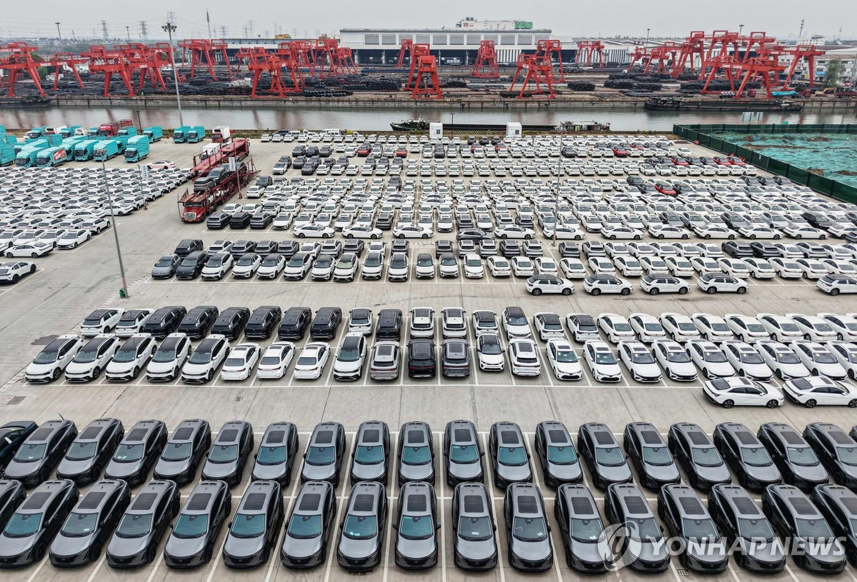 중국 저장성 항저우의 한 항구에 선적 대기중인 수출용 전기차 [AFP=연합]
