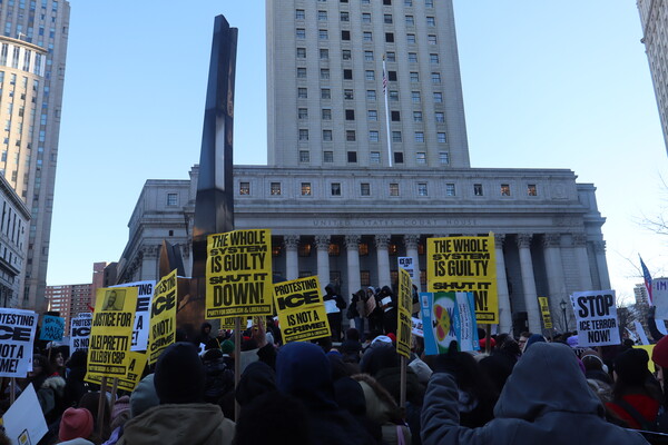 같은 달 30일 오후 맨해튼 남부의 유니언 스퀘어 파크에는 차가운 날씨와 폭설 경고에 아랑곳하지 않는 수천 명의 시위대가 결집했다. 항거의 목소리가 터져나왔고, 차가운 공기와 하늘로 주먹 쥔 팔이 들어올려졌다.
