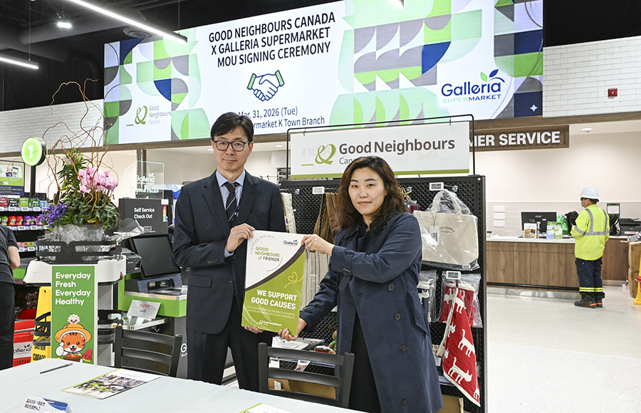 갤러리아 슈퍼마켓(대표 김문재)이 글로벌 아동권리 전문 NGO 굿네이버스 캐나다(Good Neighbors Canada: 대표 조향)와 업무협약(MOU)을 체결하고, K Town 매장 내 사회적 가치를 담은 ‘Good4Causes(G4C)’ 전용 판매 섹션을 오픈했다.