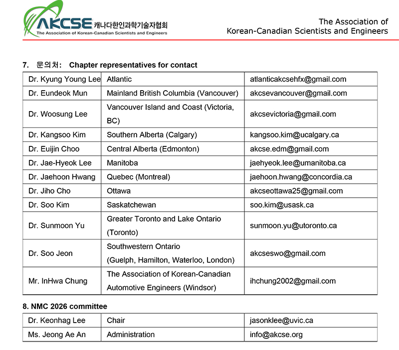 < 문의: 416-449-5204, info@akcse.org, www.akcse.org >